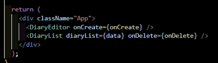 - DiaryList는 onDelete 함수를 사용하지 않지만 DiaryItem에 전달하기 위해 prop으로 onDelete 함수를 전달 받는다.
