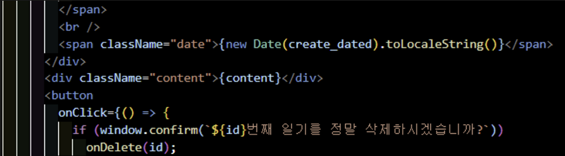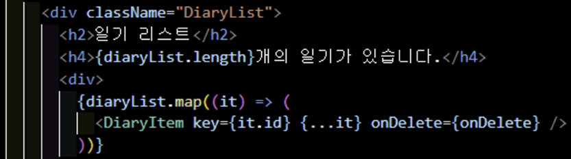 - DiaryList는 prop으로 받은 onDelete를 사용하지 않은 채 DiaryItem에 prop으로 넘겨준다.