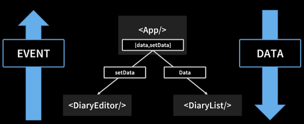 - DiaryEditor와 DiaryList에서 사용할 공통의 데이터를 useState를 이용하여 const[data, setData]로 선언한다.