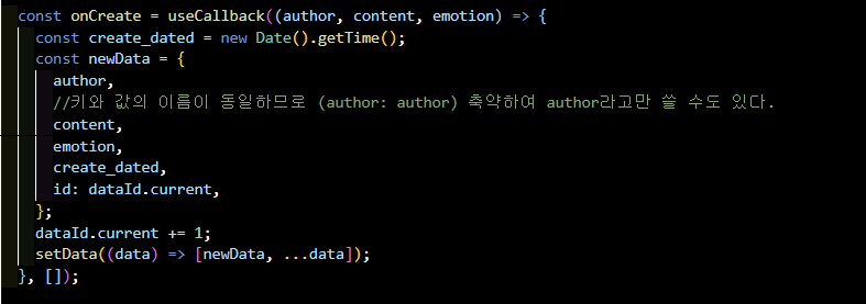 ⇒ onCreate 함수가 재생성되지 않아야만 DiaryEditor 컴포넌트를 최적화 할 수 있다!
