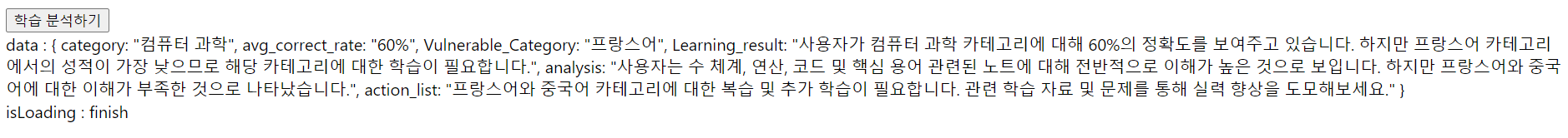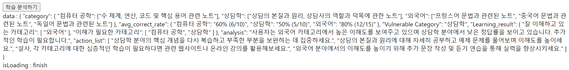 1. 동일한 입력으로 학습 분석하기를 여러번 클릭하였을 때 미세하게 내용이 바뀐다.