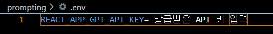 2️⃣ create-react-app으로 세팅한 프로젝트 폴더에 .env 파일을 추가하여 발급받은 키를 입력한다.